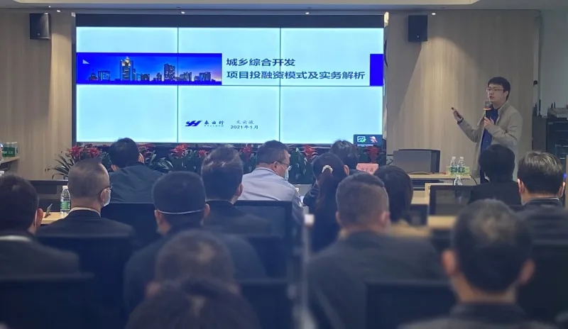 2021年1月24日,海南省发展控股有限公司组织召开城乡综合开发项目投融资业务专题培训会议,永业行副总裁文云波受邀就投融资模式及实务解析进行交流。