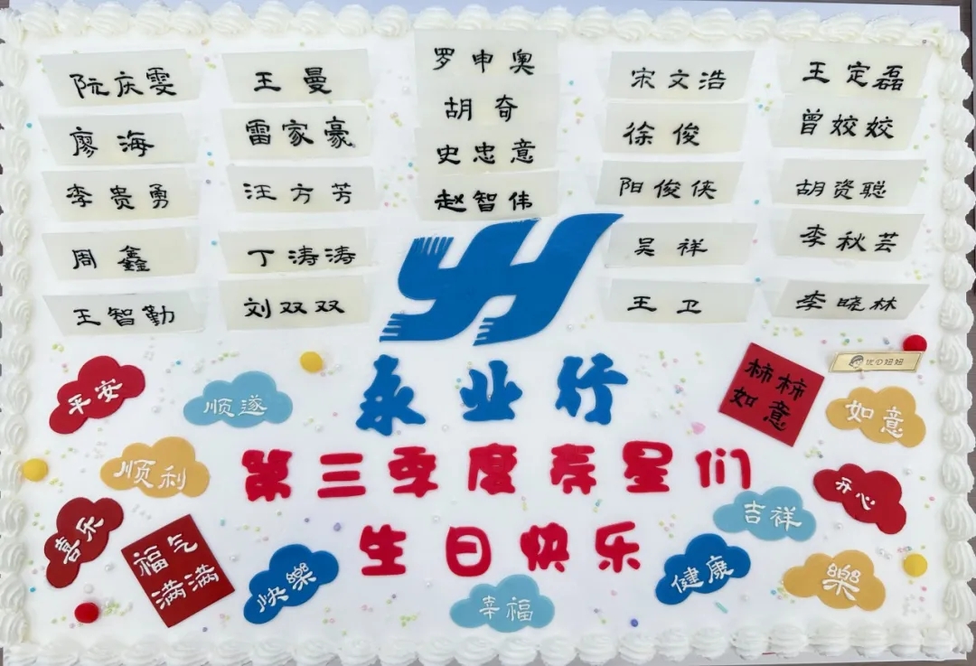 放有所有寿星姓名的生日蛋糕,公司领导、鄂西区总经理雷小明亲临现场献上生日祝福~满满的仪式感,让小伙伴们倍感温暖。