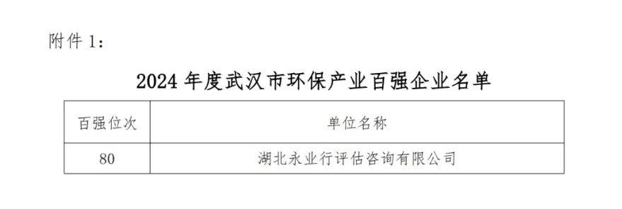 永业行入选2024武汉环保产业百强及环保咨询十强